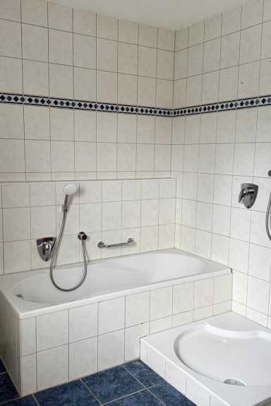 Modernes Tageslichtbad mit Badewanne und Dusche